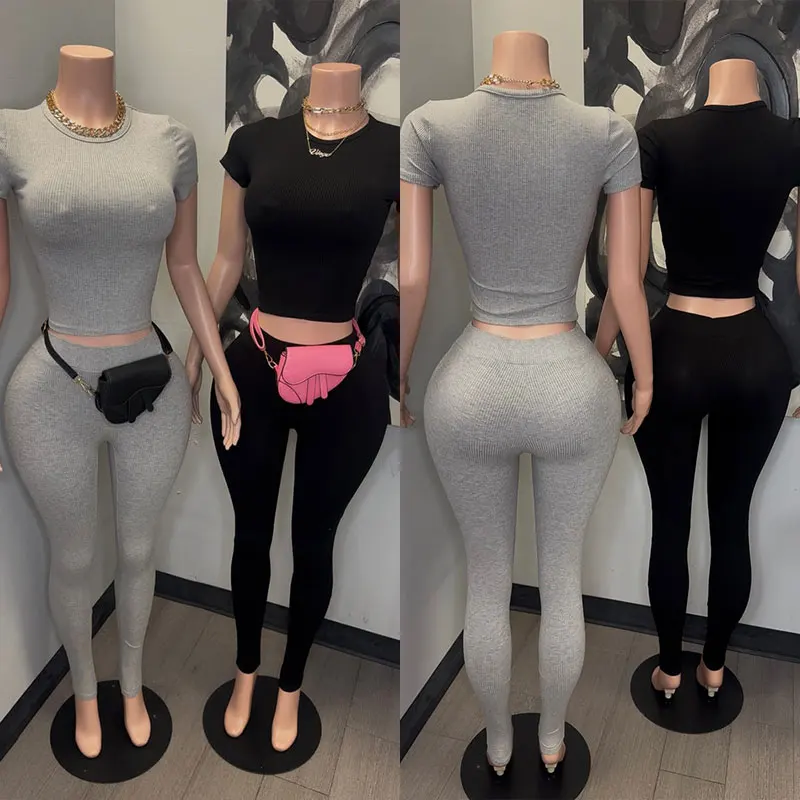 Huili Manufacturer High Quality Ribbed Activewear Bodycon Custom logo Gym Yogawear Fitness Workout Loungewear Sets for Women